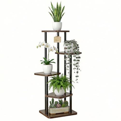 TESSTINA 5 Étages Support Plantes Intérieur, Porte Plante Métal, Étagère Plante Peu Encombrante Pour Plusieurs Plantes, Étagère Verticale Pour Plantes Extérieur Pour Salon, Balcon & Bureau (5 Etagen)