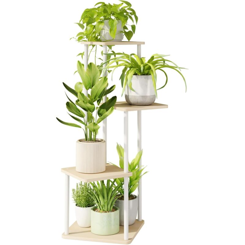 Bamworld Support Plantes Intérieur Haut, Étagère Plante Métal 4 Niveaux Pour Plusieurs Plantes, Porte Plante Extérieur Pour Terrasse, Jardin, Balcon, Salon, Chambre.
