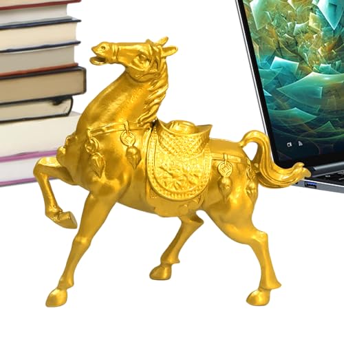 Sculpture de cheval – Figurine d'animal doré en métal pour la richesse – Décoration de bureau – À poser sur une étagère, une cheminée, une bibliothèque, une table, une voiture, un Nouvel An