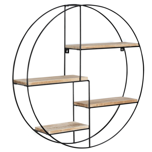 Etagère murale ronde LILY 4 niveaux bois et métal design industriel