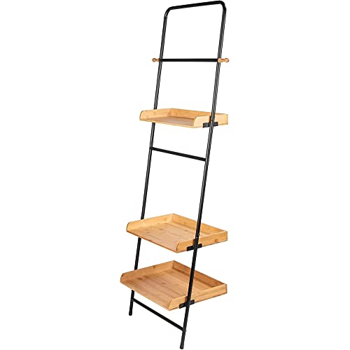 WENKO Étagère sur pied Loft, étagère murale moderne avec 3 rayons et 2 crochets, en bambou durable, bâti en tubes d'acier robuste au design Industrial cool pour la cuisine, la salle de bain et d'autres pièces, 56 x 180 x 40 cm, noir/nature