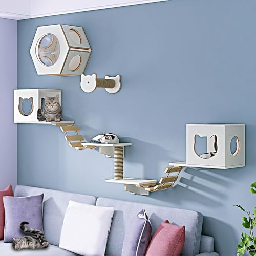 Corde D’Escalade pour Chat | Escalier Muraux Et Plates-Formes Sautantes | Accessoire Griffoir pour Chatons Et Chats Adultes | Étagère Suspendue Poour Jeu, Repos, Exercice ETT Décoration Intérieure
