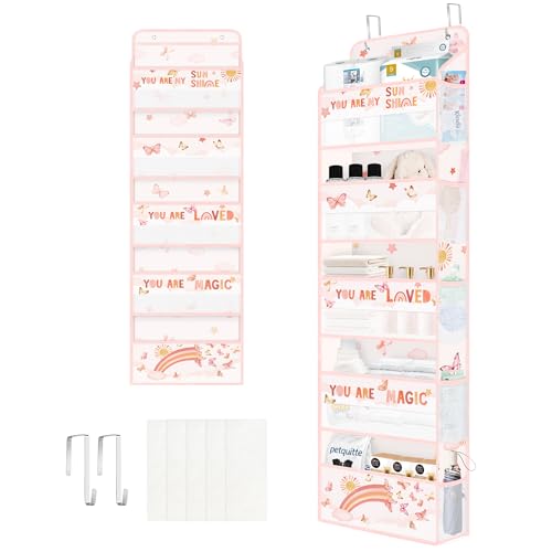 Clastyle Organisateur Suspendu Tissu Arc-en-Ciel Rangement Suspendu Fille pour Jouet Couche Vêtement Étagère Suspendue Porte pour Chambre Salle de Bain Pantry, Papillon, 5 Compartiments