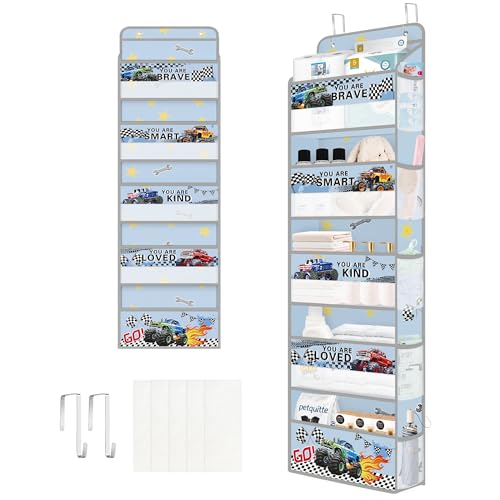 Clastyle Organisateur Suspendu Tissu Voiture Rangement Suspendu Garçon pour Jouet Couche Vêtement Étagère Suspendue Porte pour Chambre Salle de Bain Pantry, Véhicule Tout Terrain, 5 Compartiments