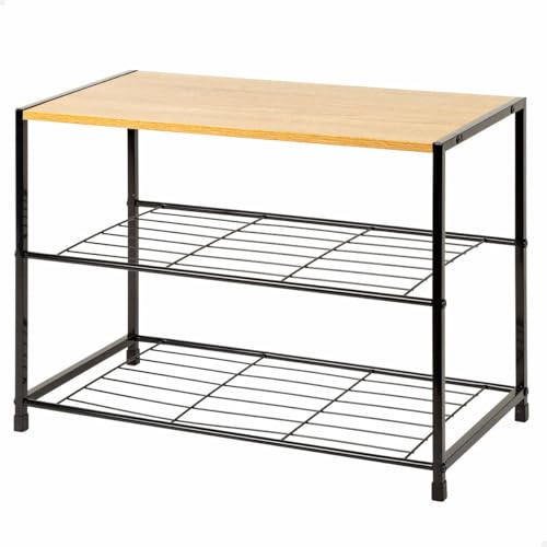 AKTIVE Max Home etagère à Chaussures en Métal entrée, 63X30X43 cm, 3 Étagères, Bois et Acier Noir, Max 8 kg, Style Industriel, Ouverte, etagère à Chaussures, Rangement pour Chaussures (18426)