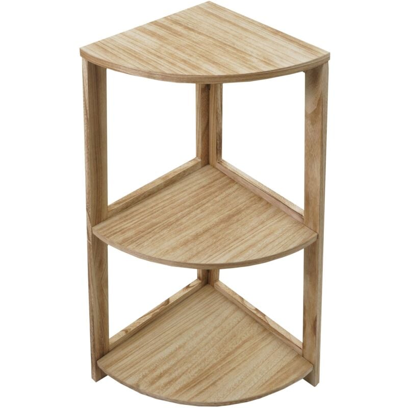 HHG - tagère d'angle 395, Étagère sur pied Étagère de salon, 3 étagères, 80x37x37cm mdf en paulownia, brun naturel