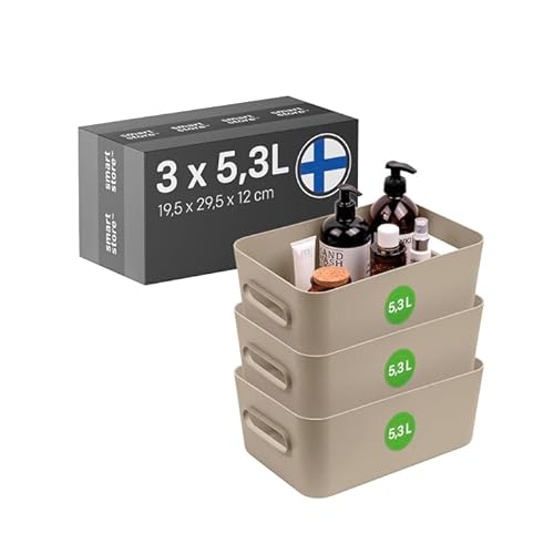 SmartStore Panier de Rangement 3× 5.3 L | Petite boite de rangement pour étagères, salle de bain, bureau | Rangement Multiusage en plastique recyclé avec Garantie de 10 ans | Beige L29.5 ×W19.5 ×H12cm