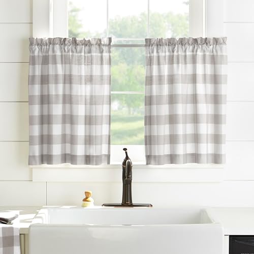 Elrene Buffalo Lot de 2 étagères de Cuisine à Carreaux 100% Coton Gris/Blanc 76,2 x 91,4 cm