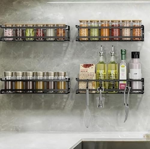 4 Pièces Etagere a Epices Murale, Rangement Epices Cuisine Mural, Adhesif Étagères à Épices Métal Sans Percage, Porte Epices Cuisine, Organiseur d'étagères à épices, pour Murs de Cuisine, Placard