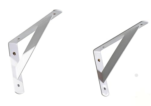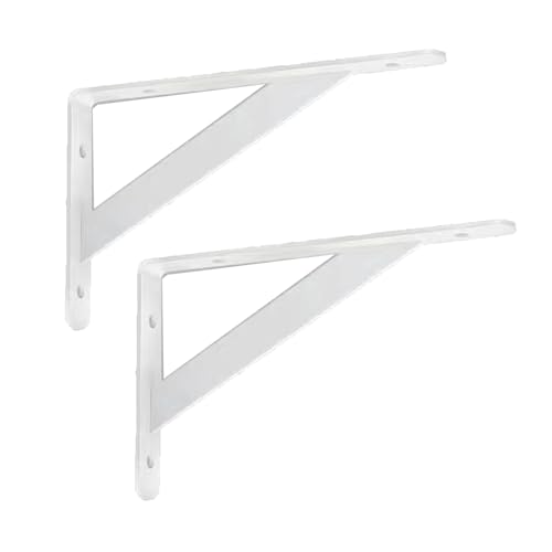 Supports en L pour étagères murales, Supports d'étagère Triangle Mural à Angle Droit 3mm d'épaisseur 20-50cm Noir et Blanc Paquet de 2(White,25cm)