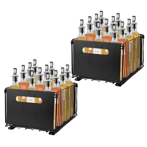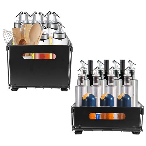HUOLE Panier Coulissant pour Cuisine, Coulissant Tiroir Étagères pour Placard Meuble Cuisine Salle Bain - Noir - 38 x 25 x 19 cm (2 pièces)