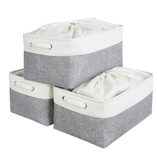 Mangata Petite Panier de Rangement Lot de 3, boites de Rangement en Tissu avec Poignée pour Étagères, Placard, Jouets (Pliable, Gris Blanc)