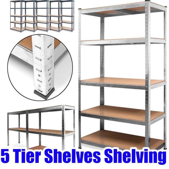 Étagère pour charges lourdes rangement cave enfichable 5 étagères acier noir 180x90x40 cm 04_0008688