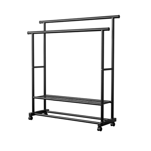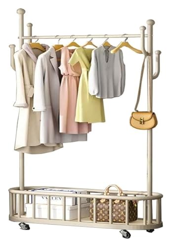 Portant à vêtements portable avec roulettes et étagères pour rangement de chambre ou placard