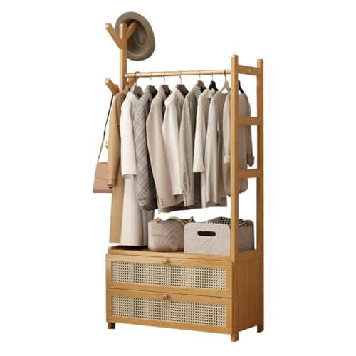 Ufine Portant à vêtements en bambou, Penderie Vetement, Porte Vetement avec 2 étagères de rangement et 2 crochets pour chambre à coucher, chambre d'amis
