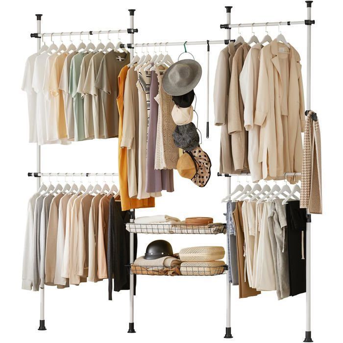 SoBuy Portant à Vêtements Télescopique Réglable avec Tringles et Étagères Grand Rangement Dressing Chambre Blanc