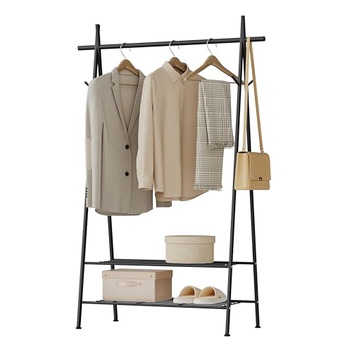Portant à vêtements autonome robuste avec roulettes en métal avec étagères de rangement pour chambre à coucher et salon (noir, 100,1 cm)