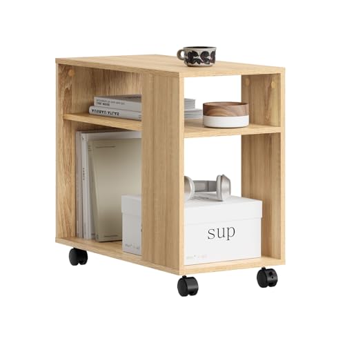 SoBuy Table d'appoint avec roulettes, Table roulante à 2 Niveaux avec étagères de Rangement, Bibliothèque Mobile pour Salon, Chambre, Bureau, L70 x P35 x H60cm Naturel FBT34-N