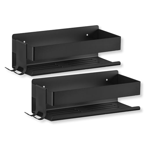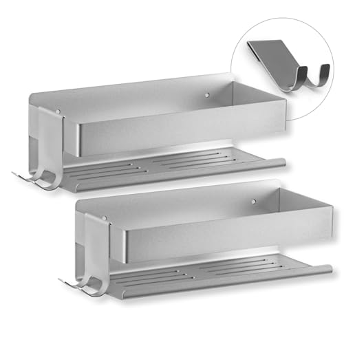 Benkstein Lot de 2 étagères de douche - À coller ou à percer - Panier de douche à suspendre - Montage sans perçage - Support pour gel douche et shampoing - Organiseur de salle de bain
