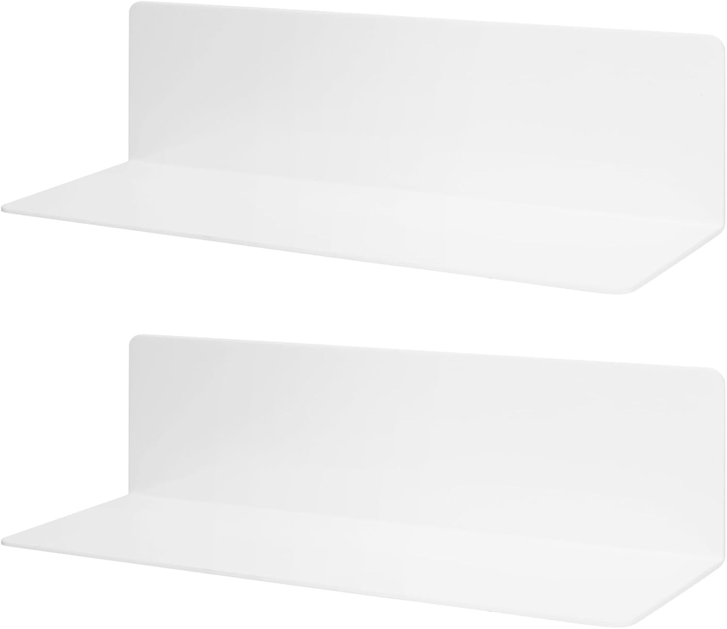 CAUC-Lot de 2 Etagères Murales Blanc sans Percage de 40 cm, Étagères sans Percer Murales Autocollantes flottantes en Acrylique pour Salle de Bain, Cuisine, Salon, Chambre à Coucher