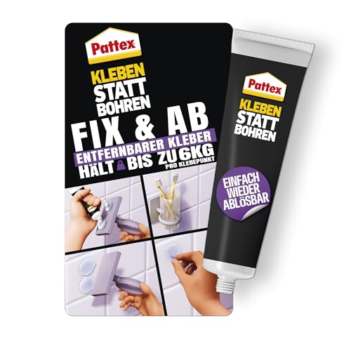 Pattex Colle au lieu de percer Fix & Ab, colle de montage amovible, colle murale forte adhérence pour étagères et fixations murales, amovible sans dommage, colle puissante pouvant supporter jusqu'à 6