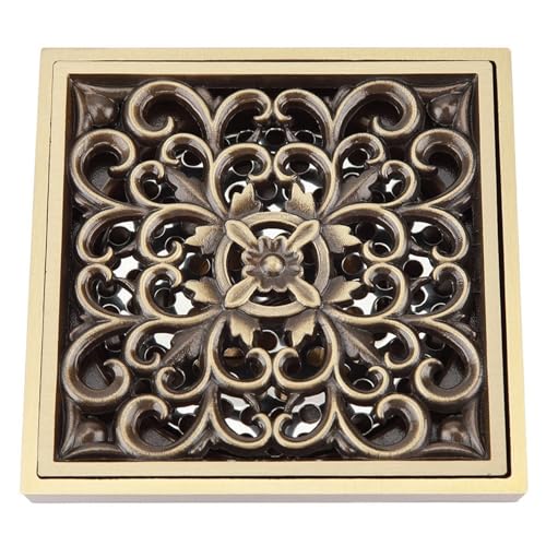 YWBL-WH Drain de Douche Antique en Laiton pour Salle de Bain, avec Couvercle Amovible, Grille de Grille 4,3 X 4,3 X 2,8 Pouces, Insert de Carrelage pour Salle de Bain, Cuisine, Garage, sous-Sol