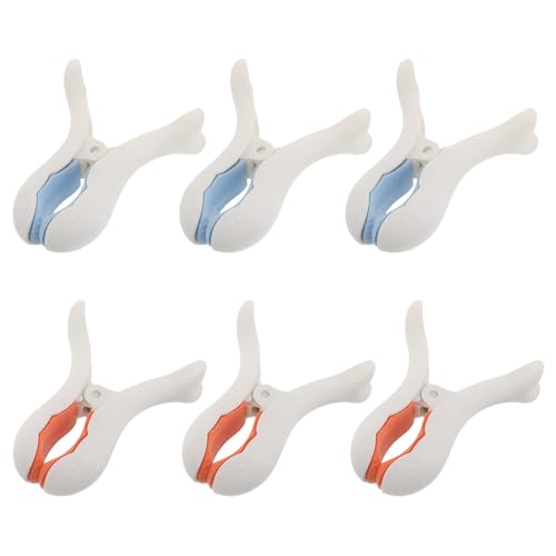 DOITOOL Pinces à Linge Coupe-Vent Extra Larges pour Étendage Extérieur, Clips à Linge en Plastique Bleu et Jaune, Lot de 6 Pinces à Courtepointe pour Fixation sans Traces, Accessoires