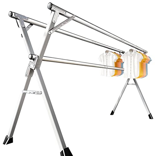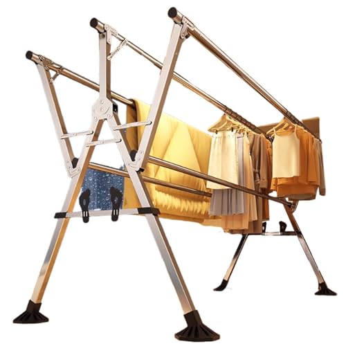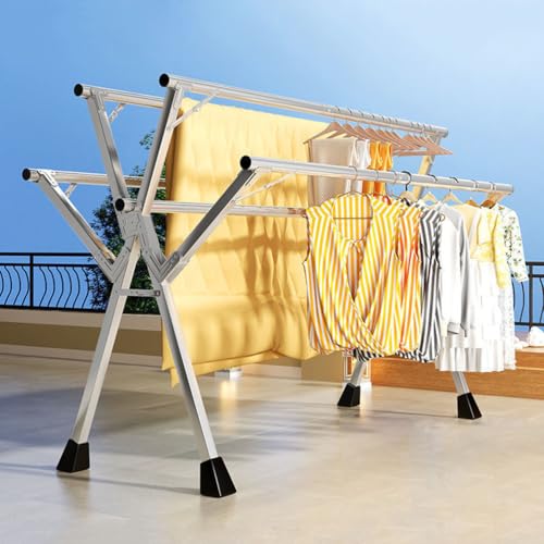 YSUEFIJO Etendoir a Linge Exterieur Solide, Etendoir Linge Interieur Pliable, Etendage Linge Exterieur Retractable, Sechoir a Linge Exterieur INOX, Séchoir Pré-assemblé, pour Cintres