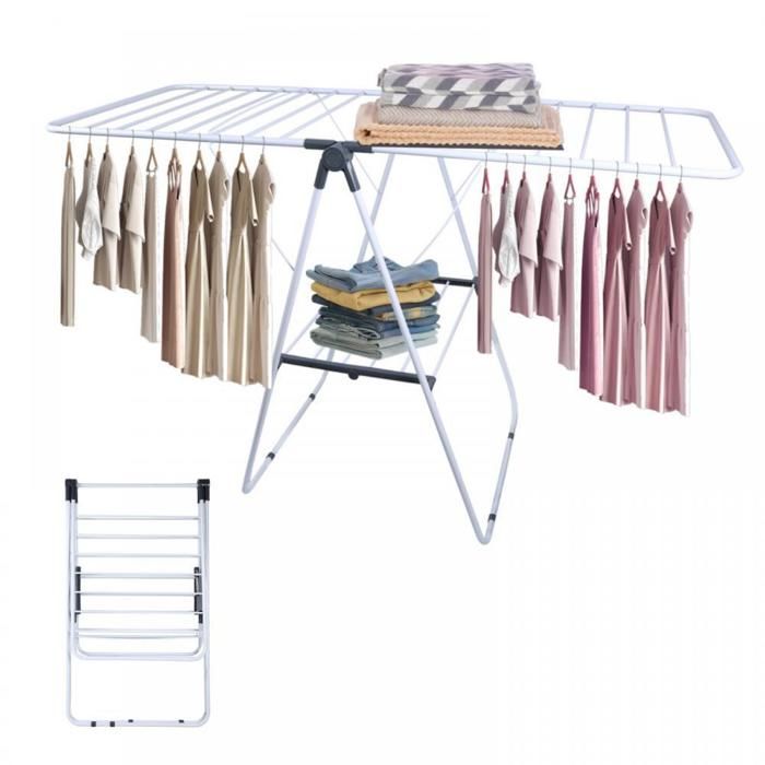 Séchoir à Linge Pliable -MENGDA-Pliable ailes latérales-Grande Surface dEtendage-Intérieur et Extérieur-138×60×98.5cm-Stable