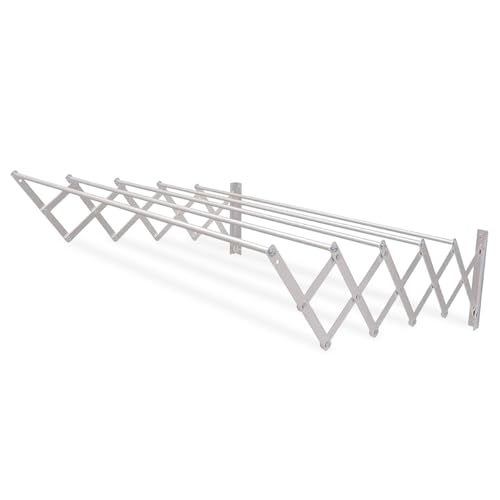 Amig – Séchoir Mural Extensible - Dimensions : 100x14x3 cm - Surface d’étendage : 5 m - Aluminium Inoxydable - Visserie en Acier Inoxydable - pour intérieur et extérieur - Installation Facile