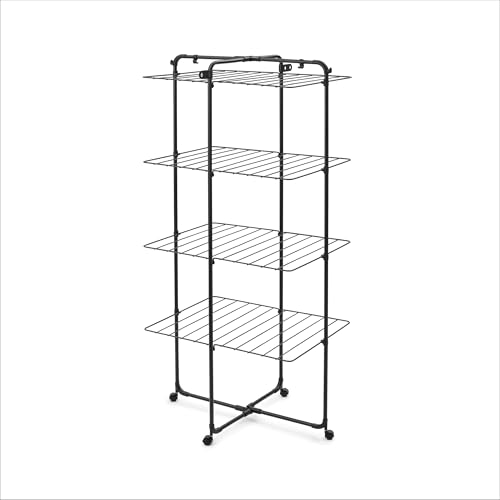 Brabantia Étendoir à Linge Tour HangOn de, 23 mètres (Noir Mat) – Séchoir à Linge Ajustable à Large capacité, Pliable et Compact – Étendoir en Tour avec Roues et Crochets pour ceintres
