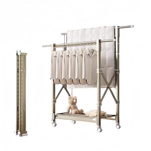 Étendoir à linge pliable avec roulettes réglables en acier inoxydable pour serviettes, linge et vêtements, design peu encombrant pour une utilisation en intérieur et en extérieur