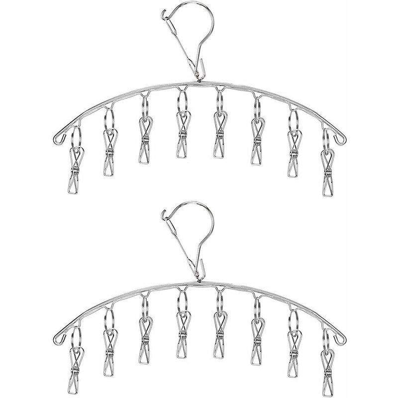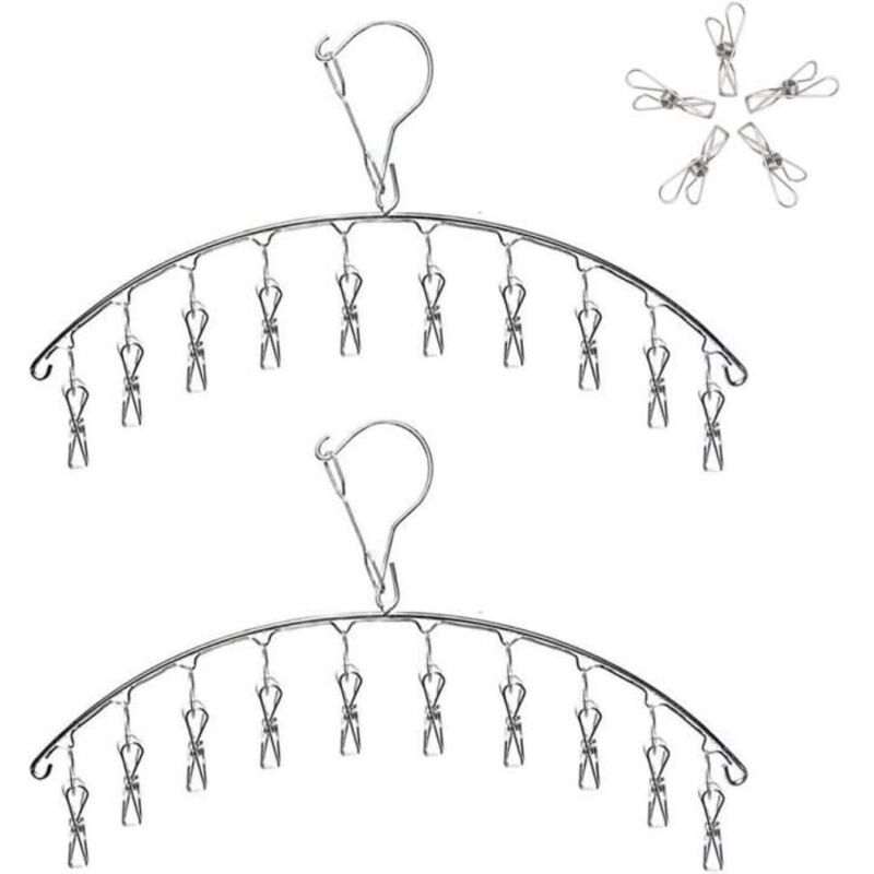 Lot de 2 séchoirs à chaussettes en acier inoxydableavec 40 clips - Cintre,Étendoir à Linge à Suspendre,Petit séchoir à linge - Coupe-vent - Pour