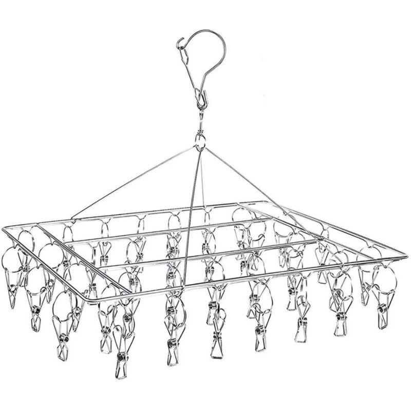 Etendoir Chaussette, Cintre de séchage en Acier Inoxydable avec 36 Clips à L'épreuve du Vent Étendoir à Linge à Suspendre pour Chaussettes,