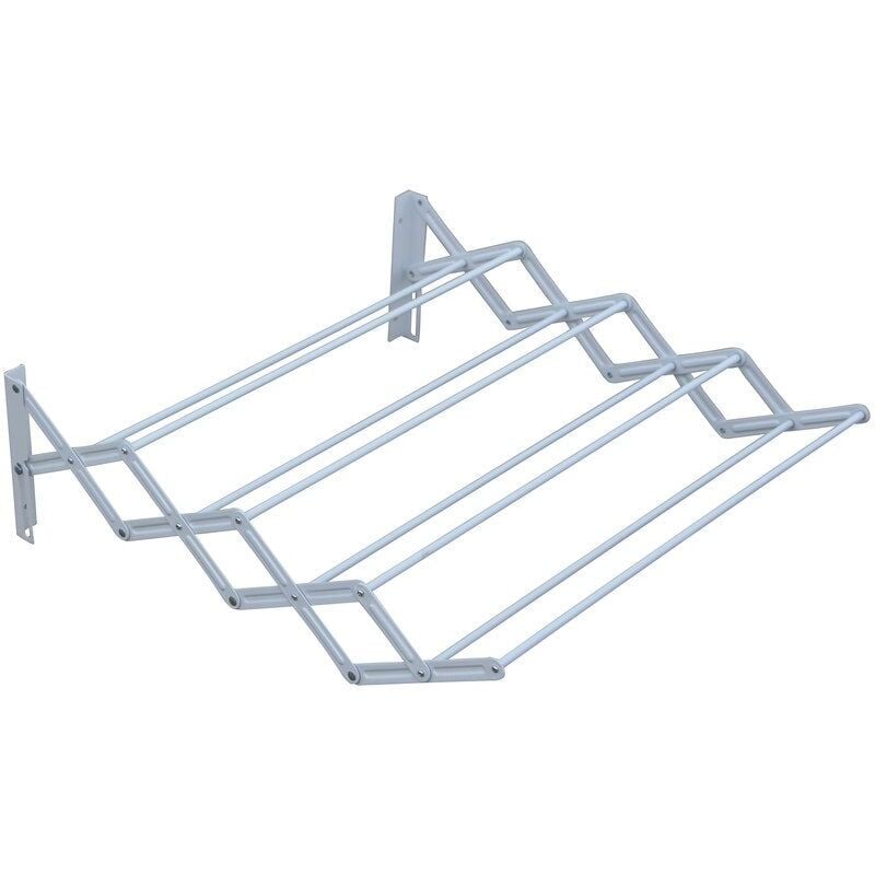Etendoir à suspendre mural blanc – Longueur 4.8m – Acier – Capacité 2kg – 8 barres pour petits espaces