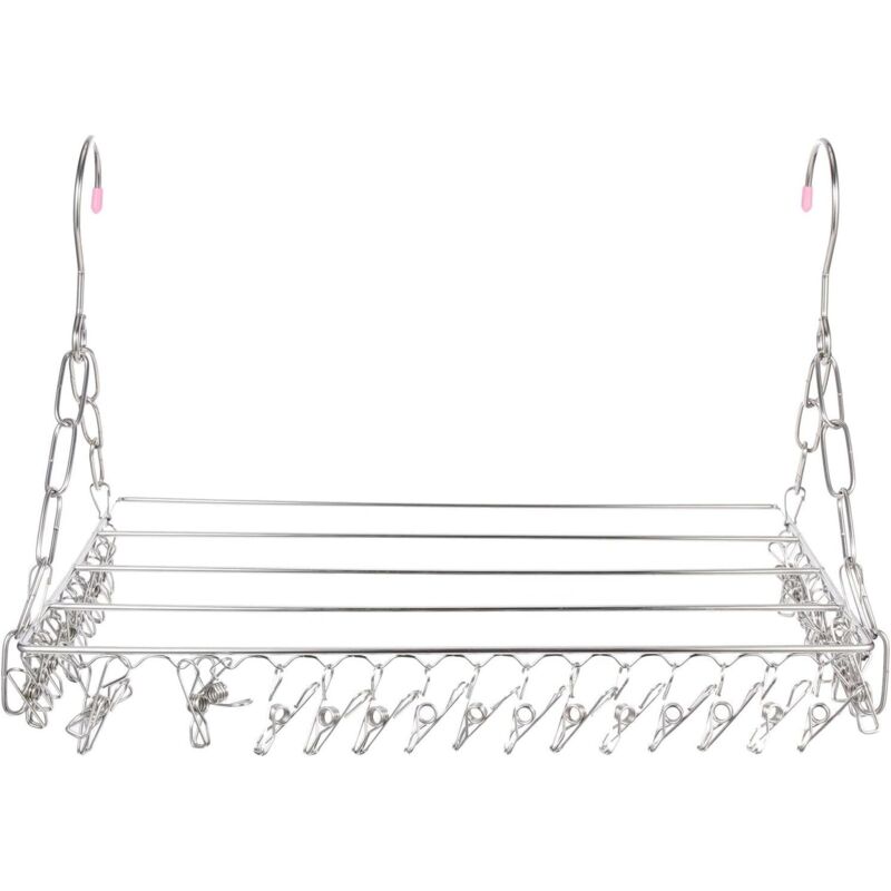YiHYSj Sèche-Linge en Acier Inoxydable Etendoir Chaussette Étendoir à Linge à Suspendre Egouttoir Drip Cintre 24 Pinces à Linge pour Chaussettes,séchage Chaussettes,écharpe,Underware, Short