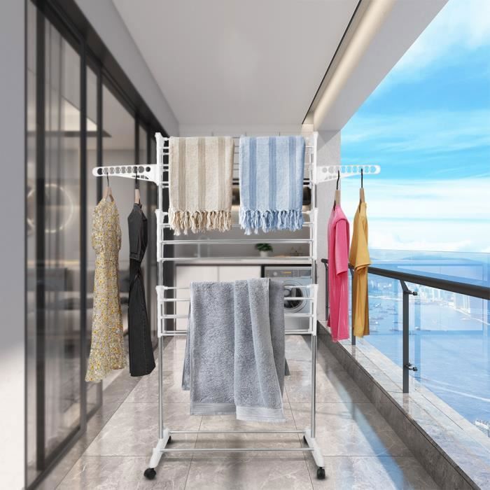YIYI. SÉCHOIR À LINGE PLIABLE 3 NIVEAUX CHARGE MAXIMALE: 30 KG ETENDOIR À LINGE EN ACIER INOX BLANC.