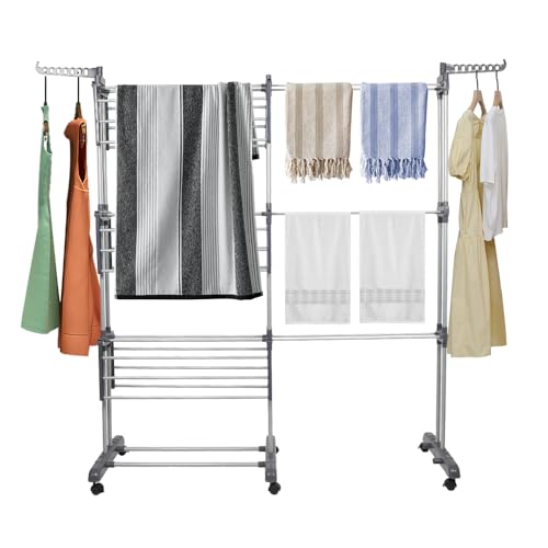 Ribech Etendoir Linge Tour sur roulettes | Séchoir 4 Niveaux en Acier Inoxydable avec 6 Ailes Pliantes | 76x50x172 cm | Gain de Place pour Balcon Salle de Bain & Intérieur | Gris