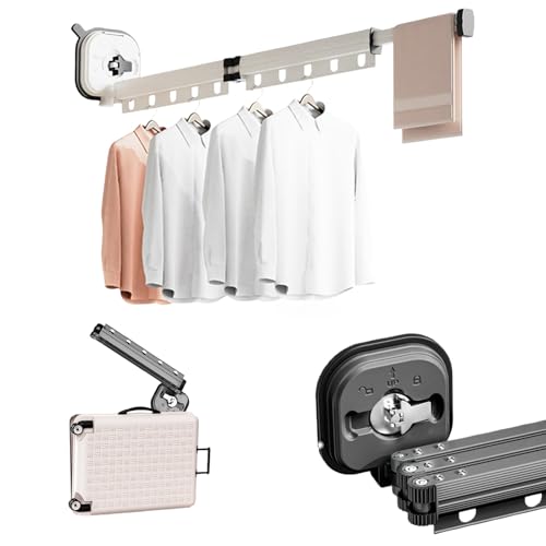 Séchoir à linge rétractable et réglable - Étendoir hydraulique gain de place pour armoire, cintre à retour souple, charge 30 kg, largeur réglable, solution de rangement pour vêtements (Coule