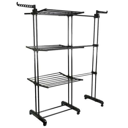 Belfoyer Étendoir à Linge Pliable 3 Niveaux|Séchoir à Linge Intérieur Extensible avec roulettes|Étendoir Linge Gain de Place, Acier & Plastique Durable, pour Maison, Balcon, Buanderie-WX94901