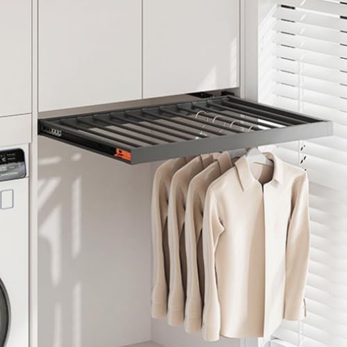 Générique Étendoir Mural Gain de Place avec tiroir à Pantalons Coulissant, idéal pour sécher Le Linge au-Dessus du Lave-Linge (664-714 mm) - Optimisez Votre Rangement et Votre Organisation