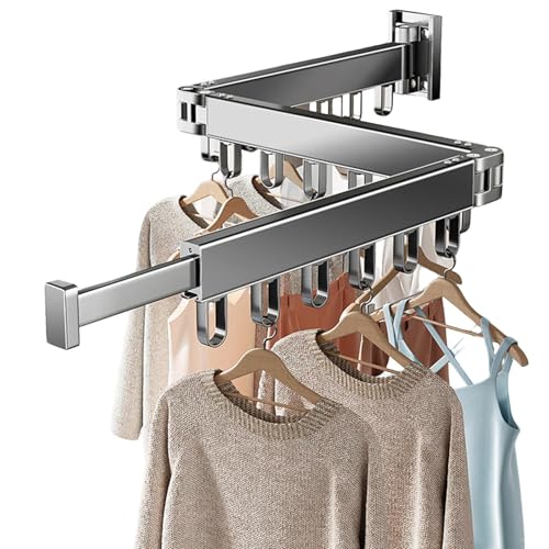 Étendoir extensible gain de place en acier inoxydable pour intérieur/extérieur, montage facile, support de séchage pour vêtements de balcon