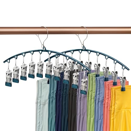Qualsen Lot de 2 Etendoir Chaussette en Acier Inoxydable avec 10 Clips, Cintre Pantalon Cintre Pince Gain De Place Seche Chaussettes pour Chaussettes, sous-Vêtements, Bonnets, Serviettes (Vert)