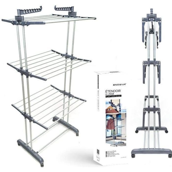 JEOBEST Etendoir Linge 4 Niveaux Grande Sechoir a Linge Pliable avec Roues Acier Inoxydable Seche Linge Etendoir