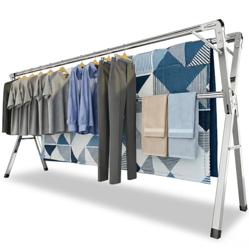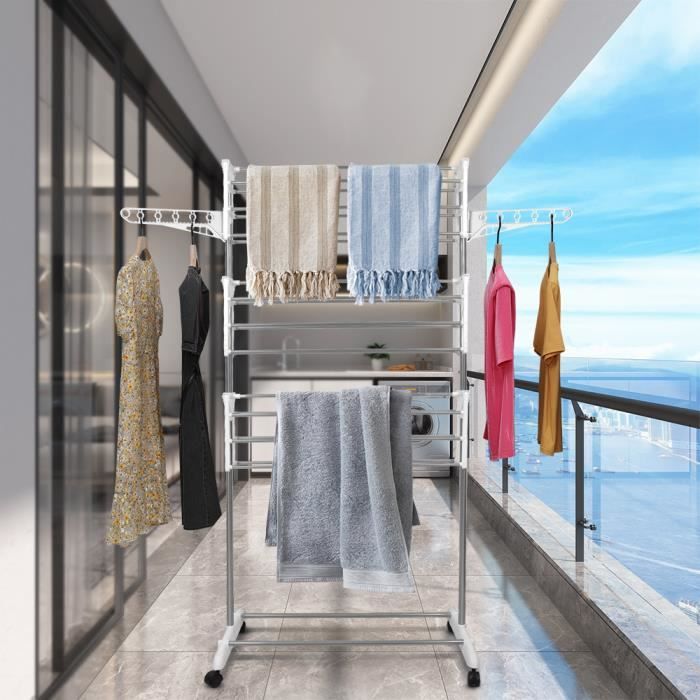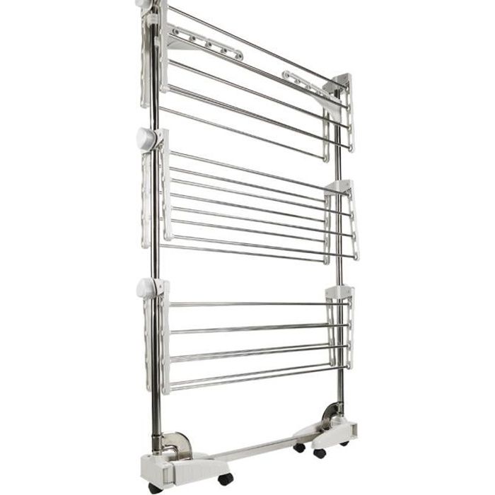 GRUS Séchoir à linge inox à 3 niveaux étendoir gris étendoir pliable avec deux tiges hauteur: 158 cm