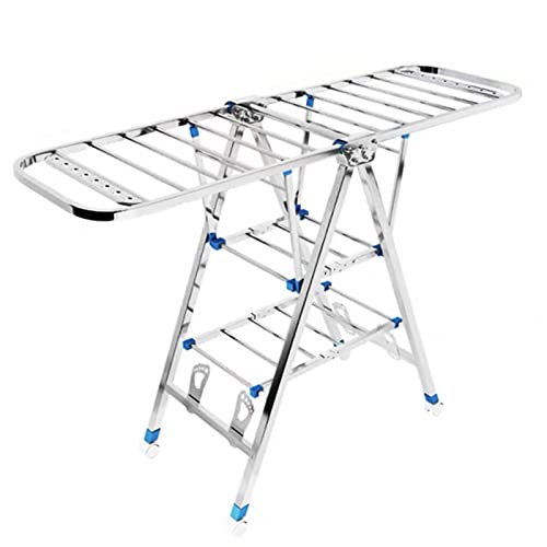 HOMIDEC Etendoir Linge Interieur, 4 Niveaux Grande Sechoir a Linge Pliable avec Roues, Acier Inoxydable Seche Linge Etendoir pour Usage Intérieur et Extérieur, Bleu