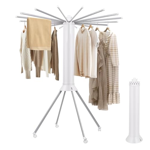 AISIR Séchoir à Linge Etendoir à Linge Pliable Intérieur et Extérieur, Rotation à 360° Sèche Linge avec 3 Bras de Crochet, Blanc
