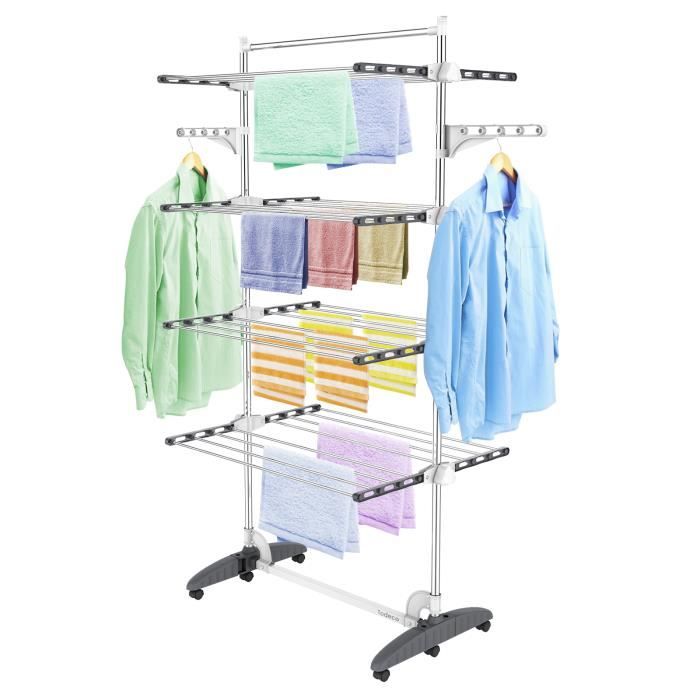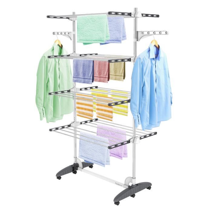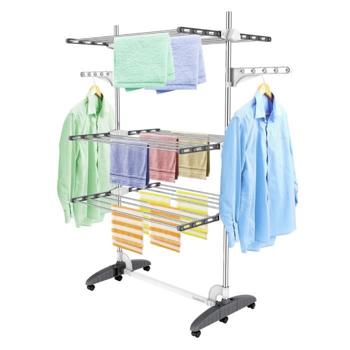 Todeco Séchoir à Linge Pliant à 3 Niveaux Etendoir à Linge intérieur en Acier Inoxydable Sèche-Linge 2tendoir Pliable Gris