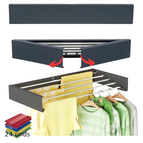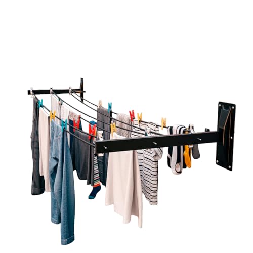 CHAHUANV Étendoir à linge mural rétractable pour suspendre les vêtements, pliable, crochets noirs