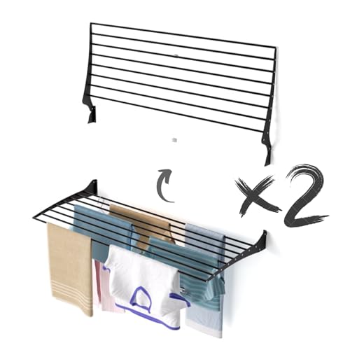 Kelisiting Étendoir à Linge Mural, Pliable et Robuste à 2 Volets, sans perçage, Gain de Place pour buanderie, Balcon, Salle de Bain, terrasse, dortoir, Appartement, Noir